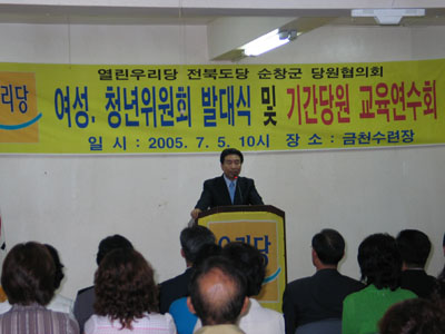 열린우리당 전북도당 순창군당원협의회(협의회장 노기성)는 5일 구림청소년수련장에서 이강래 국회의원, 최규성 국회의원(도당위원장), 조배숙 국회의원(익산을), 강인형 군수, 강대희, 김병윤 도의원, 양영수 군의장, 타 시ㆍ군 여성ㆍ청년위원장과 순창군기간당원 300여명이 참석한 가운데 여성ㆍ청년위원회 발대식 및 기간당원교육연수를 실시했다.(사진)