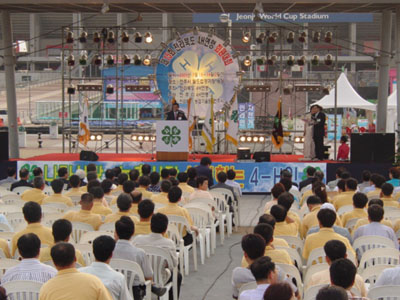 선배 4-H회원들의 모임단체인 (산)한국4-H연맹 전라북도 회원대회가 전주시 월드컵 경기장에서 15일부터 16일까지 2일간 600여명의 회원들이 참석한 가운데 순창 4-H연맹(회장 양재실) 40여명이 참여해 개최됐다.(사진)
