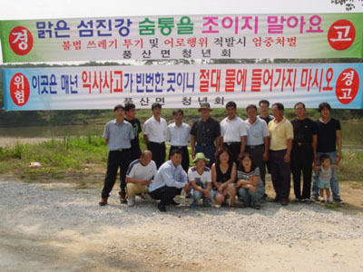 풍산면 청년회(회장 김귀영 46세)임원 및 회원 55명은 14일 면내 비지정 관광지로 알려진 향가 유원지를 찾아 자연정화 활동 및 섬진강 살리기, 여름철 물놀이 안전사고 예방 캠페인을 전개했다.