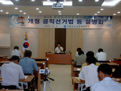순창군 선거관리위원회(위원장 송영환)는 4일 제 4회 전국동시지방선거 입후보 예정자를 대상으로 정치관계법에 대한 설명회를 문화의 집에서 개최됐다.