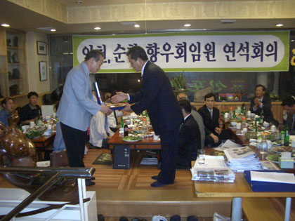 이날 개최된 임원회의 1부 행사에서는 경과보고에 이어 인천향우회 명칭을 “인천 순창향우회”로 개칭하는 한편 향우회 발전에 공이 많은 김석일 전 회장과 서윤수 직전회장에게 감사패를 전달하여 회의장 분위기는 화기애애한 가운데 고조됐다.