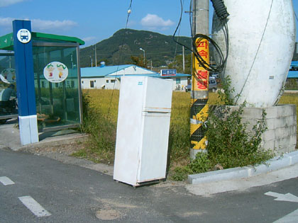 ▲ 순창고 주변 사거리에 무단으로 버려진 냉장고가 순창의 환경 행정을 말해주고 있다