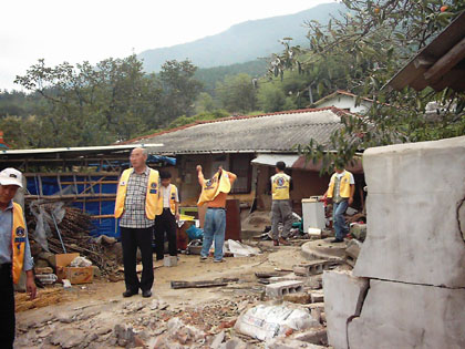 순창라이온스 클럽에서 사랑의 집짓기사업으로 구영문 씨 집을 짓고 있는 회원들