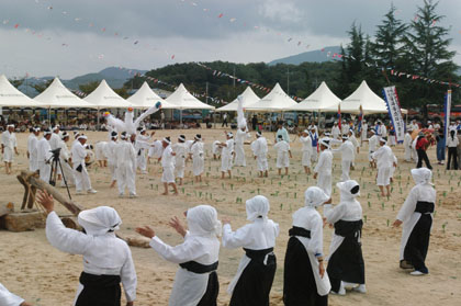 잊혀져가는 농경문화예술을 후대에 길이 전수하기 위해 열린 이날 공연은 간간히 비가 오는 궂은 날씨에도 불구하고 공연을 보기위해 참석한 많은 관람객들로 성황을 이뤘다.