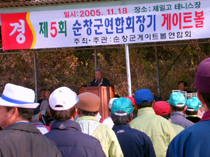 게이트볼 연합회(회장 박태선)가 주최하고 군 생활체육회가 후원하는 제 5회 연합회장기 게이트볼 대회가 제일고 테니스장에서 강인형 군수, 양영수 군의장, 군의원, 전북 게이트볼연합회 김규완 회장을 비롯한 임원, 사회단체 동호인 300여명이 한자리에 모여 성황을 이루었다.<사진>