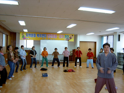 농협에서는 매주 월, 화, 목요일(18시 30분~ 20시까지) 강습을 하며 요가 강사는 순창 풍류도 김정영 원장으로 수강생은 40~60대까지 50명을 지역문화복지사업 여성조합원에게 단전호흡 요가를 실시하고 있다.<사진>