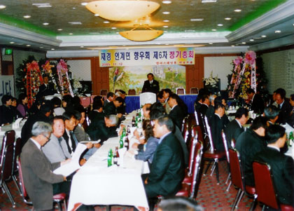 이날 개최된 정기총회에는 고석진 군 향우회장과 각 읍ㆍ면 향우회장을 비롯한 조성만 청년회장과 각 읍ㆍ면 청년회장, 각 읍ㆍ면 부녀회장, 고향에서는 강신득 면장, 임용석 군의원, 김기곤 면민회부회장 등 200여명의 기관 단체장이 상경하여 훈훈한 인정 속에 1부 행사가 진행되면서 향우회 발전에 공이 많은 ‘인사모’ 회장 한상용 씨와 재경인계용마초 총 동문회장인 윤영선 씨에게 공로패를 수여하고 손유진 학생과 황인식 학생에게 장학금을 전달하는 시간을 가졌다.