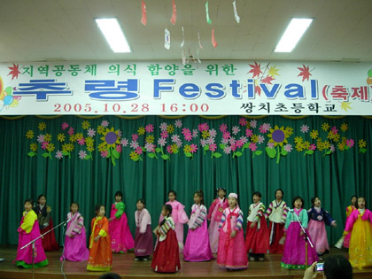 쌍치초등학교(교장 임낙성)는 다목적실에서 지난달 28일 학생 87명과 김문성 학교운영위원장 및 모순애 학부모도우미교사회 회장을 비롯하여 70여 학부모와 관내 학교장과 기관장이 참석한 가운데, 전통문화예술의 멋과 얼을 익히고 공동체의식을 함양하기 위한 ‘10회 추령(FESTIVAL)축제’가 성대히 열렸다.<사진>
