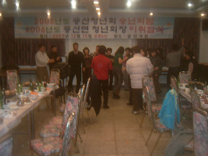 풍산면 청년회(회장 김귀영)는 15일 궁전가든에서 청년회 신ㆍ구 회장단 이ㆍ취임식 및 송년의 밤 행사를 가졌다.<사진>