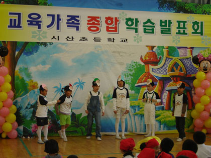 시산초등학교(교장 송영균)에서는 지난달 30일 다목적교실인 큰 교실에서 학부모와 선배들이 참여한 가운데 ‘2005시산교육가족 종합학습발표회를 개최했다.<사진>
