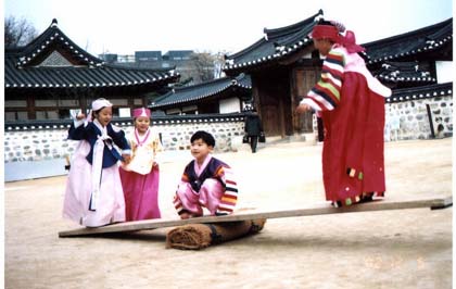 설날의 놀이로서는 남녀가 방 안에서 다 같이 윷놀이를 하고, 젊은 부녀자들은 널뛰기, 남자들은 연날리기를 한다. 1910년 한국을 강점한 일제는 수천 년 동안 민간에서 지켜 내려와서 관습화된 음력설을 말살하고자 갖은 방법을 동원하였다. 예를 들면 떡방앗간을 섣달 그믐 전 1주일 동안은 못 돌리게 하였고, 설날 아침 새벽 세배 다니는 사람이 특히 흰 옷을 입었을 때는 양력설에 세배 안 가고, 또 무색옷을 안 입는다 해서 검은 물이 든 물총을 쏘아 흰 옷에 검은 물이 얼룩지게 하는 등 갖가지 박해를 가하였다.