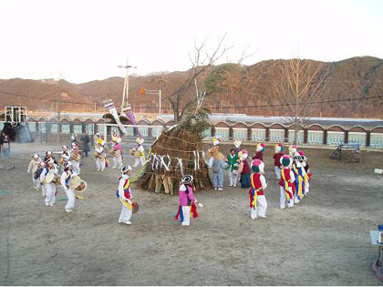 유등 고뱅이 농악단(단장 박일호)이 전통 세시풍속을 전승보존해 면민의 화합과 안녕을 기원하는 정월보름 굿 시연 및 달집태우기행사를 실시해 지역 화합분위기 조성에 앞장서고 있다.
