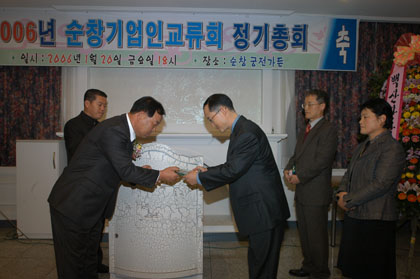 .jpg) 우리지역 발전을 위해 헌신 봉사하고 있는 우수 공무원을 발굴하여 사기를 진작시키고 있는 순창기업인교류회(회장 이순용)는 지난달 1월 궁전가든에서 강인형 군수와 양영수 군의회 의장과 관내에서 기업 활동을 하고 있는 기업인 50여명이 참석한 가운데 우수공무원 표창식이 있었다. 김종관 사무국장의 사회로 진행된 이날 행사에서 이순용 회장은 “지역발전을 위해 숨어서 노력하고 있는 공무원을 찾아서 치하하는 일은 아름다운 일이며 우리고장에서 기업활동을 하고 있는 우리들도 솔선수범하여 지역민들에게 신뢰받는 기업인상을 가꿔가겠다.”고 밝혔다. 강인형 군수는 축사를 통해 “우리고장에서 기업하시는 분들이 활동하는데 어려움이 없도록 행정적 뒷받침을 다할 계획이며 정주 인구 증대에 기업인들이 앞장 서 줄 것”을 당부했다.