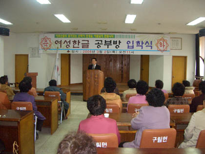 순창군 기독교연합회(회장 설동문 목사)는 2일 구림면사무소 2층 회의실에서 양동엽 구림면장이 참석한 가운데 2006년 여성 한글 공부방 입학식을 가졌다.