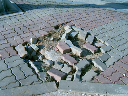 경찰서 사거리 가구나라 앞 보도블록이 심하게 파손되어 있어 이용하는 보행자들의 불편을 초래하고 있으나 뒷짐만 쥐고 있는 관계 당국의 무성의에 군민은 한숨뿐..