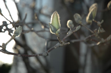 경찰서 청 내에 목련꽃이 마치 봄을 시샘하듯 봉우리가 올라오고 있다.