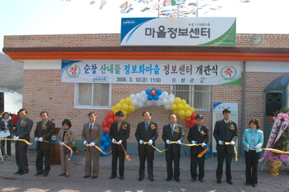 정보센터 광장에서 열린 이날 개관식에는 강인형 군수를 비롯 기관단체장, 마을주민 등 150여명이 참석 농촌지역 정보생활화를 앞당길 정보센터 개관을 축하했다.