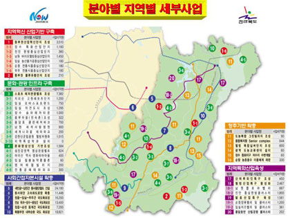 먼저 지역혁신산업기반 구축을 위해 6개 시ㆍ군에 지역 특성을 고려한 특화산업단지를 조성하고 교통요충지인 남원에서 동부권 물류 유통단지를 조성 호남과 영남권을 아우르는 물류 중심지를 육성하고 문화관광 인프라 구축을 위해서는 남원에서 지리산모험 레포츠단지와 세계 사랑정원, 흥부마을민속촌을 조성하고, 진안에는 용담호를 배경으로 한 생태공원으로 클린레저파크를 조성하며, 무주에는 태권도성지조성사업, 장수에는 경주마육성목장과 승마레저타운건설, 임실 의견도시 건설을 그리고 순창에는 강천산 군립공원을 웰빙자원화하여 사계절 관광객이 찾아드는 휴양관광단지로 만들 계획이다.