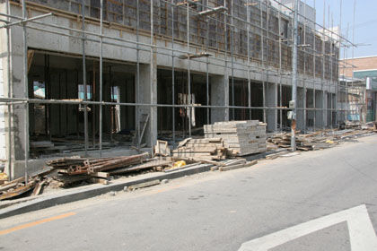 공사가 진행 중인 건축현장 부근 인도에 건축자재들이 놓여있어 보행에 불편을 가중시키고 있을 뿐만 아니라 안전사고 위험까지 초래하고 있다. 더구나 공사자재와 공사의 영향으로 보도블록이 깨지거나 인도를 가로막고 안전망도 설치하지 않은 채 공사를 시행하고 있어 시공업자들의 안전에 대한 의식이 전무한 것으로 나타났다.