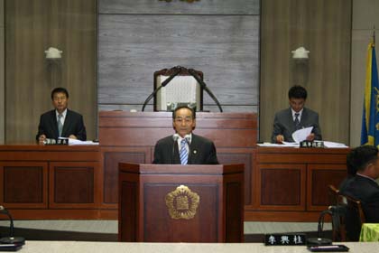 “나는 법령을 준수하고 주민의 권익신장과 복리증진 및 지역사회의 발전과 국가시책의 구현을 위하여 의원으로써 직무를 성실하게 수행할 것을 주민 앞에 엄숙히 선서합니다.”