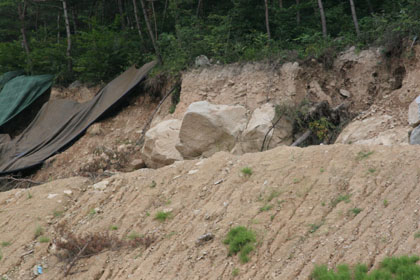 최근 발생한 O아스콘 공장 뒤편 절개지 일부가 설계에도 포함되어 있지 않은 임야부분에 개발이 이루어 졌다는 지적과 주민들로부터 의혹이 제기되고 있다는 것이다.