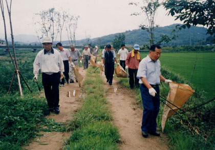 .jpg) 순창 애향운동본부(본부장 노원준)는 13일 회원 40여명이 참석한 가운데 순창읍 동부우회도로 대동산 경천 주변에 2005년 식목행사 시 벚꽃길 조성사업으로 헌수운동을 실시한 벚꽃나무를 식수한 이후 벚꽃나무 가꾸기 제초작업 및 자연보호 활동을 전개했다.