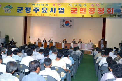 순창군의 민선4기 4년 동안 추진할 주요사업 공청회가 25~26일 양일간 관내 마을이장, 개발위원장, 새마을지도자, 부녀회장, 및 기관 사회단체장등 1,500여명이 참석한 가운데 군민복지회관 체육관에서 실시되었다.