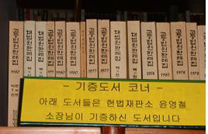 .jpg) 유등면 출신이자 법조계뿐만 아니라 일반인에게도 덕망있는 인물로 잘알려진 윤영철 전 헌법재판소장이 7일 순창공공도서관에 평소에 애장하던 자신의 도서 2000여 권을 기증했다.