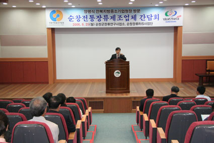 전북지방중소기업청(청장 양평식)은 지역특화산업 추진 일환으로 전통장류산업 생산업체 간담회를 25일 임영호 부군수, 김대귀 장류식품과장, 중소기업청 과장, 지역업체 50여명이 참석한 가운데 장류사업소에서 개최했다.