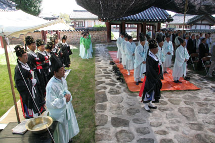석전대제는 향교에서 매년 음력 2월과 8월 상정(J)일에 선상선사의 학덕을 기리며 공자 등 우리나라 현인 18분의 위패를 기리는 제사의식이다.