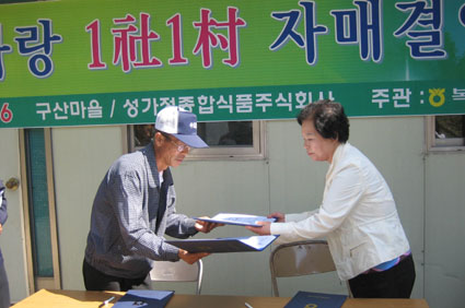 앞으로 구산마을 주민 30여명은 복흥면의 30㏊에서 재배되는 청정 무공해 배추, 무, 고추 등 약 300여톤의 원료 농산물을 성가정식품에 납품할 수 있게 돼 연간 약 1억원의 농가소득이 기대되고 있다.