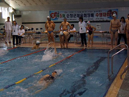 .jpg) 순창군수영연합회(회장 손영환)는 14일 실내수영장에서 강인형 군수를 비롯한 기관ㆍ사회단체장, 수영동호인 150여명이 참석한 가운데 제5회 체육회장배 수영대회가 열렸다.