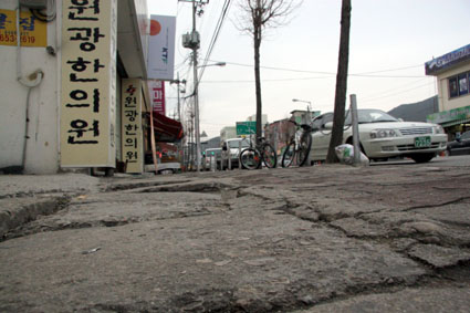 터미널에서 교육청사이 양방향의 인도를 보면 노면자체가 자갈길을 연상케 할 정도로 부식과 침하로 인한 훼손정도가 심각한 상태인데다 노약자나 장애인들이 이곳을 지나려면 적지 않은 불편을 감수해야하는 실정이다.