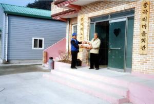 ▲15일 창주마을 출신 김종구(김호실업, 서울)씨가 마을회관 환경개선을 위한 성금으로 50만원 기탁.