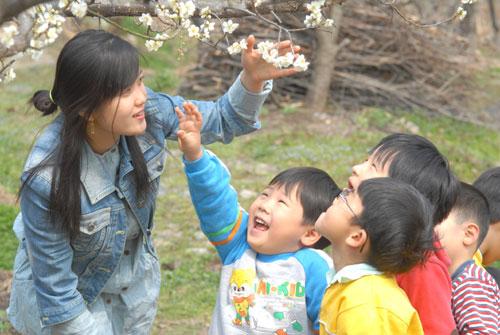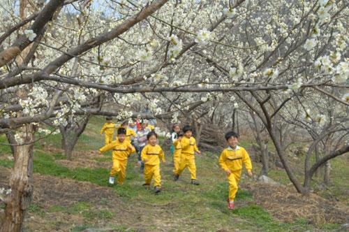 봄내음이 완연한 21일 순창군 동계면 동계어린이집 원생들의 마음에도 봄이 찾아와 화사한 매화꽃밭을 걸으며 봄을 만끽하고 있다.