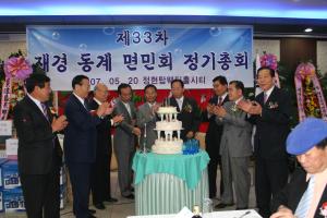 재경 동계면민회(회장 이동재) 는 지난 20일 서울대림동 소재 정현웨딩홀 씨티 그랜드룸 연회실에서 제33차 정기총회 행사를 가졌다,
