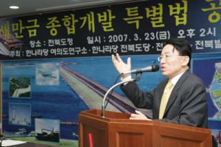 새만금 특별법과 태권도공원특별법이 험난한 관문을 통과할 수 있도록 약속을 지켜주신 한나라당과 적극 지원을 아끼지 않은 대통합민주신당, 전북 정치권, 새만금특별법 추진위원회, 태권도인, 전북 도민들께 진심으로 감사를 드립니다.