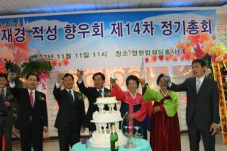 재경적성면향우회(회장 조택종) 제14차 정기총회가 11일 서울 영등포구 대림동 정현탑시티홀에서 열렸다. 이날 행사에는 고향에서 한성희 면장, 최명귀 도로사업소 유치 추진 위원장을 비롯한 마을 이장, 부녀회장, 청년회장, 재경향우회 이홍기 회장, 임주실 부녀회장, 김양섭 청년회장, 각 읍면 향우회장, 부녀회장, 청년회장 등 350명이 참석하여 밝고 정감 넘치는 향우회가 열렸다.