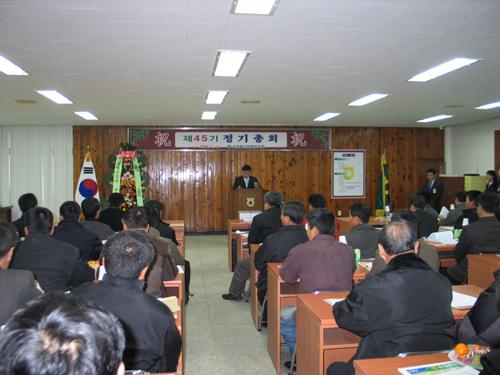 변화하는 축협, 조합원으로부터 신뢰받는 축협을 슬로건으로 활기차게 출발한 순정축협(조합장 최기환)은 2일 조합 2층 회의실에서 정기총회를 열고 제45기 결산총회를 실시했다.<사진>