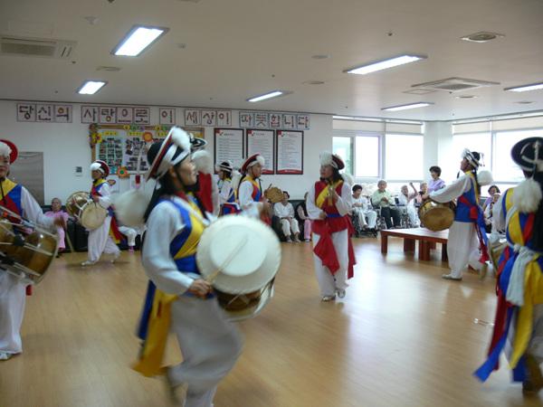 순창국악원(원장 구태서) 우리소리농악단(단장 조기정) 단원 20여명은 지난 20일 효사랑병원과 오산노인전문요양원을 방문 판굿과 설장구(서옥이, 김혜정, 조점례)로 노인병동에서 병마와 싸우는 어르신들에게 우리가락을 알리는데 위문 공연을 펼쳤다.
