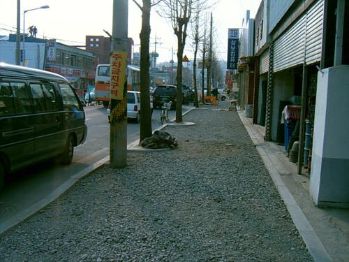 현재 공사 중인 가드레일과 보도블록